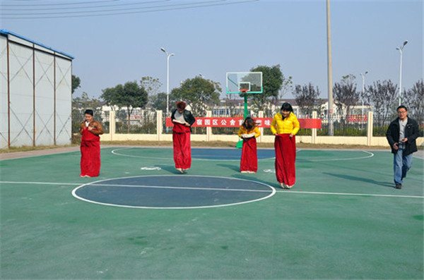 本次趣味運(yùn)動(dòng)會(huì)分團(tuán)體賽和個(gè)人賽兩部分。團(tuán)體賽包括拔河、摜蛋和齊心協(xié)力等3個(gè)項(xiàng)目,個(gè)人賽有玉兔蹦蹦跳、1分鐘跳小繩、夾乒乓球、自行車慢騎、托球跑、1分鐘定點(diǎn)投籃和踢毽子等7個(gè)項(xiàng)目,每個(gè)項(xiàng)目都融趣味性、競(jìng)爭(zhēng)性于一體。選手們?cè)谫悎?chǎng)上通力合作,你追我趕,展現(xiàn)出了高超的運(yùn)動(dòng)技巧和良好的團(tuán)隊(duì)精神,感受到了運(yùn)動(dòng)帶來(lái)的巨大樂趣。