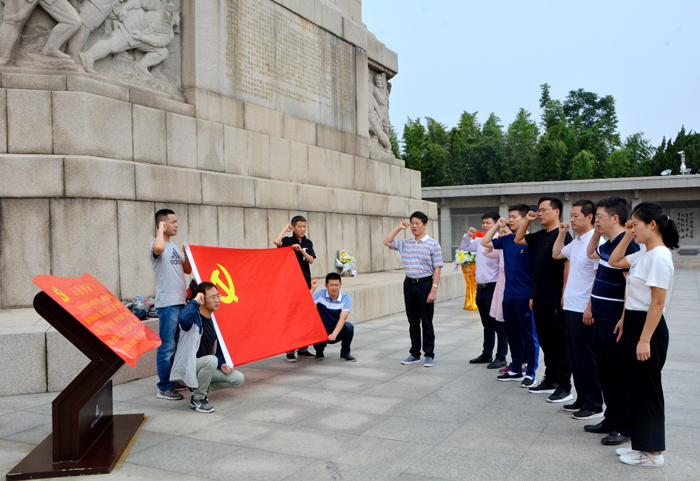 在淮海戰(zhàn)役烈士紀(jì)念塔前,大家駐足瞻仰,對烈士們肅然起敬。在公司黨支部書記劉建華的帶領(lǐng)下,全體黨員面對鮮紅的黨旗,舉起右手,重溫入黨誓詞,“我志愿加入中國共產(chǎn)黨,擁護黨的綱領(lǐng),遵守黨的章程,履行黨員義務(wù),執(zhí)行黨的決定……”,鏗鏘有力的宣誓,向為在淮海戰(zhàn)役中犧牲的先烈們表示深深的敬意,表達了全體黨員愿為社會主義事業(yè)奮斗終身的堅定信心。隨后,大家懷著崇敬的心情瞻仰了在戰(zhàn)役中英勇犧牲的烈士英名錄。在紀(jì)念館展廳,大家都認(rèn)真參觀,仔細(xì)聆聽講解員對歷史的講解,每到一個展柜都會駐足觀看圖片資料,了解淮海戰(zhàn)役的整個過程,深深感受到了革命先烈們的非凡膽識和英勇壯舉,并對人民群眾踴躍支持前線行為表示由衷贊嘆。