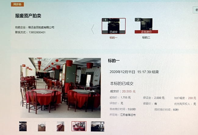 12月11日下午3時(shí),城發(fā)公司部分報(bào)廢廚具、桌椅等物資網(wǎng)上拍賣開始,10家競(jìng)買人,經(jīng)過17分39秒90次的緊張激烈競(jìng)價(jià),最終以20555元成交標(biāo)的,比評(píng)估價(jià)超出10倍。