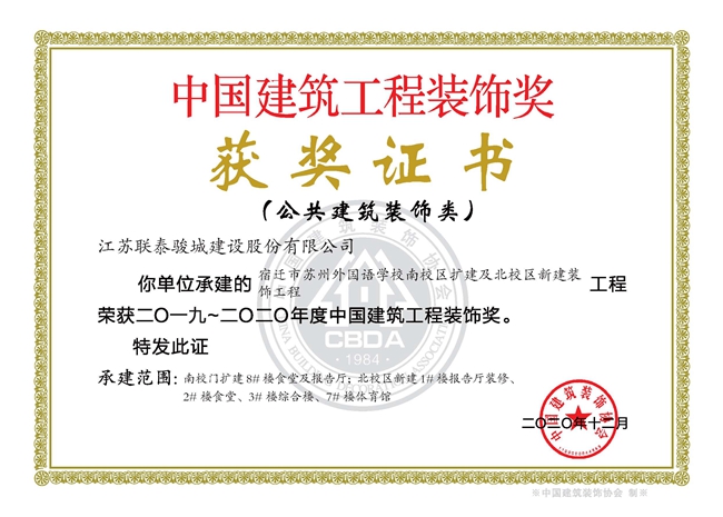 近期,傳來喜訊,由開發(fā)公司代建的宿遷市蘇州外國語學校南校區(qū)擴建及北校區(qū)新建裝飾工程獲得中國建筑裝飾行業(yè)最高獎項“中國建筑工程裝飾獎”。