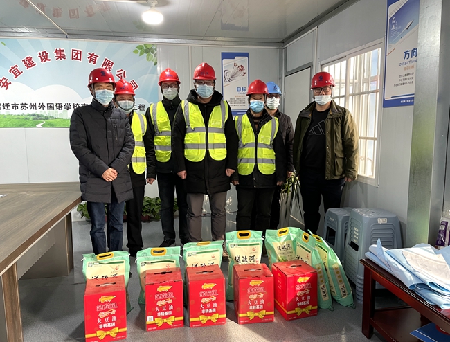 檢查后,在宿蘇外南北校區(qū)擴(kuò)建項(xiàng)目施工現(xiàn)場(chǎng),房建工程部向堅(jiān)守在一線的工人送去了食用油和大米,叮囑大家注意春節(jié)期間安全和疫情防控并表達(dá)了新春祝福,祝愿大家過一個(gè)平安祥和的春節(jié)。