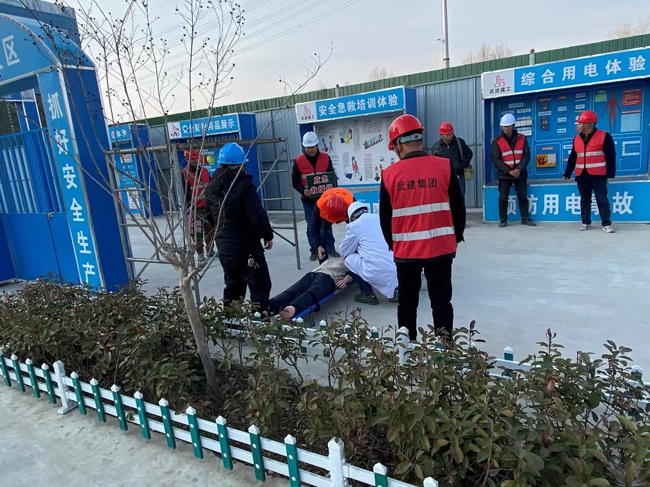 為消除事故隱患,筑牢施工現(xiàn)場(chǎng)的安全防線,提升施工現(xiàn)場(chǎng)安全生產(chǎn)及事故應(yīng)急響應(yīng)及處置能力,2月16日下午,青年公寓一期項(xiàng)目在工地辦公區(qū)北側(cè)開展了2023年度高處墜落及觸電傷害應(yīng)急演練,項(xiàng)目各方共計(jì)約40余人參與了本次演練。