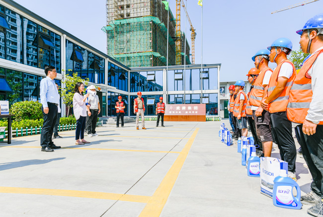 炎炎夏日送清涼,絲絲關(guān)懷暖人心。持續(xù)高溫悶熱天氣,給堅(jiān)守一線工人帶來了嚴(yán)峻“烤”驗(yàn),也時(shí)刻牽動(dòng)著公司領(lǐng)導(dǎo)的心。8月10日上午,城發(fā)公司董事長、總經(jīng)理李蘭霞,總經(jīng)理助理陸永軍、張?bào)K一行對公司在建項(xiàng)目一線施工人員和明日鄰里中心物業(yè)人員開展防暑降溫送清涼慰問活動(dòng),為奮戰(zhàn)在高溫一線的勞動(dòng)者們送上一份清涼、一份關(guān)懷。