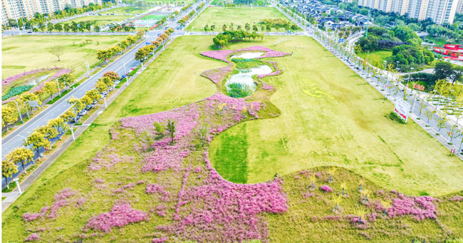 2023年10月1日,蘇宿工業(yè)園區(qū)蘇州公園北側(cè)綠地的粉黛亂子草盛開了,一片片粉色花海如夢似幻,吸引游人前來觀賞,樂享國慶假期。