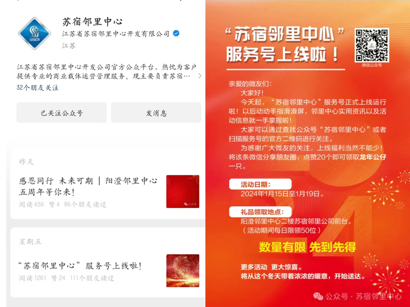 “蘇宿鄰里中心”服務號,是蘇宿鄰里公司官方賬號,旨在構(gòu)建社群關(guān)系、活動宣傳、商鋪招租及有關(guān)政策等方面提供最新資訊,讓載體變得有溫度起來。
